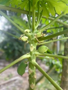 - Buah betik (Carica papaya) ini kelihatan kecil, tidak normal bentuknya, ada yang mengecut da nampak seperti terbantut.